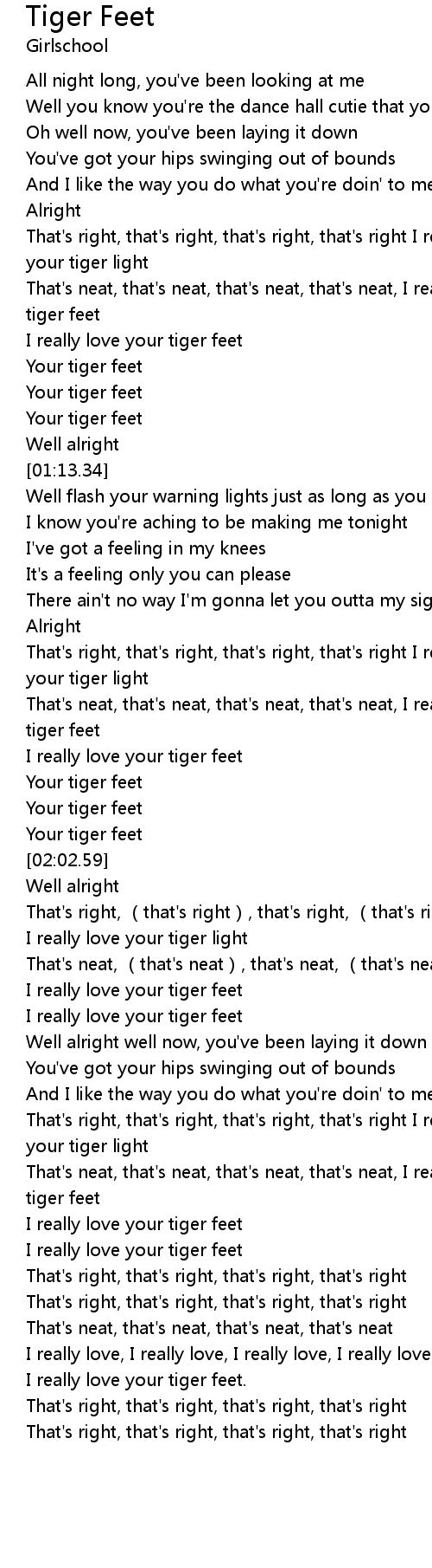 | [00:56.44] | That's neat, that's neat, that's neat, that's neat, I really love your tiger feet |