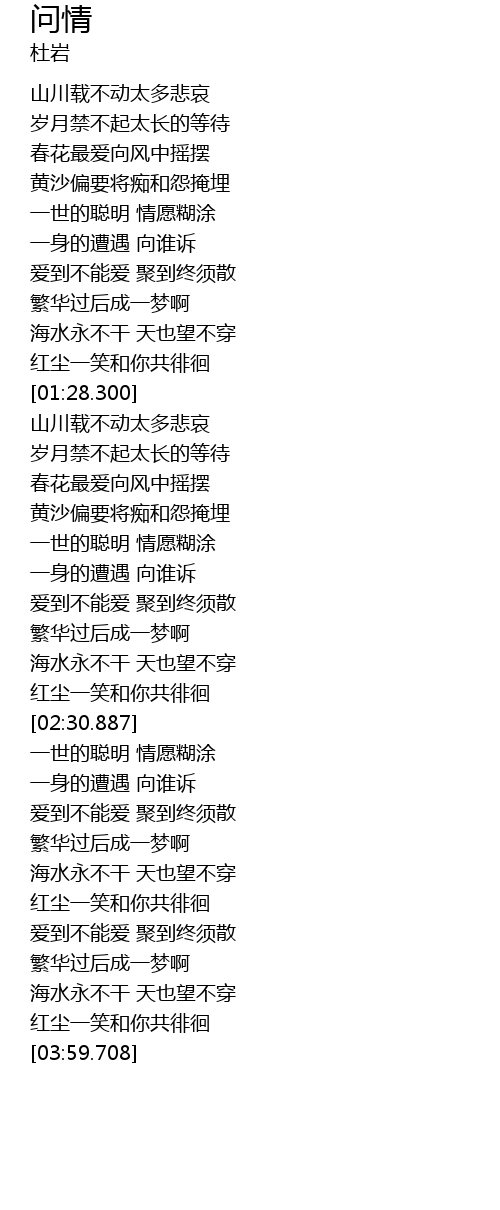 | [01:29.500] | shān chuān zài bù dòng tài duō bēi āi |