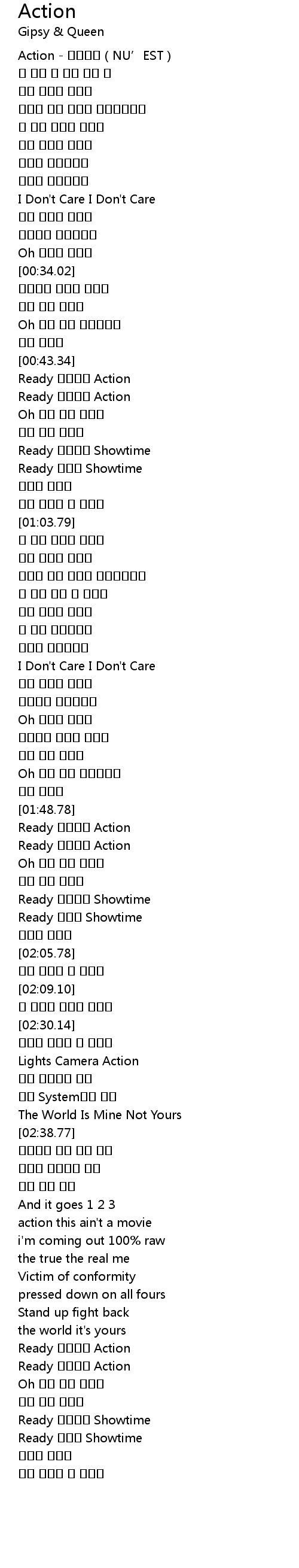 | [01:49.47] | Ready 끝내주게 Action |