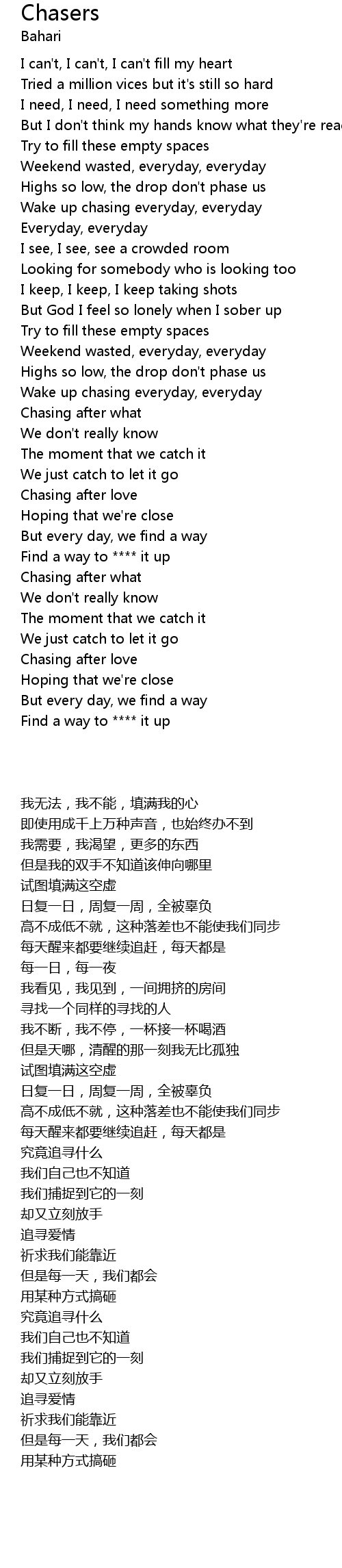Wake up chasing everyday, everyday |