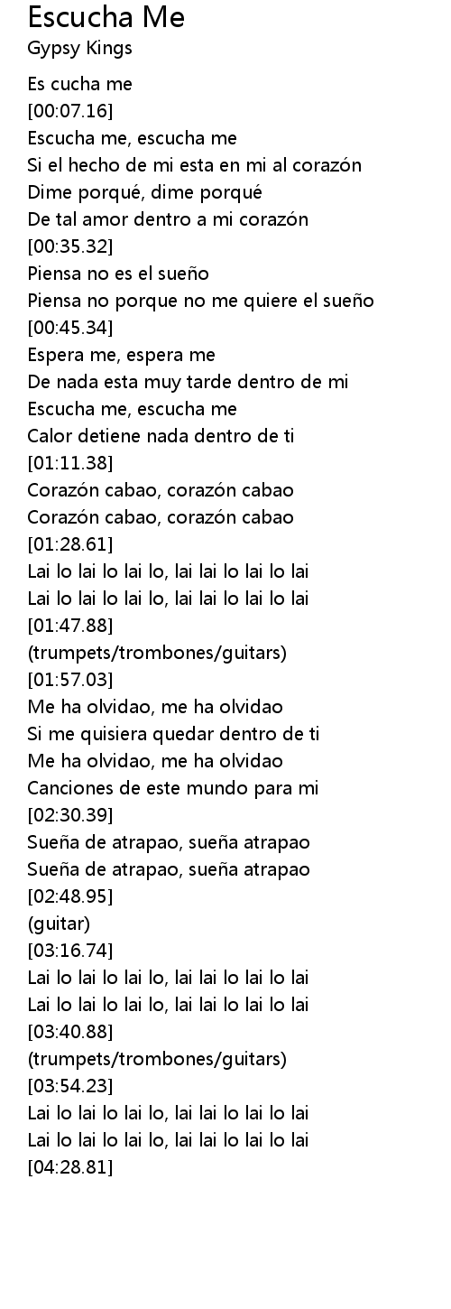 | [00:39.97] | Piensa no porque no me quiere el sue o |