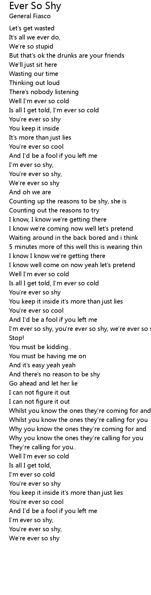 Ever So Shy 歌词