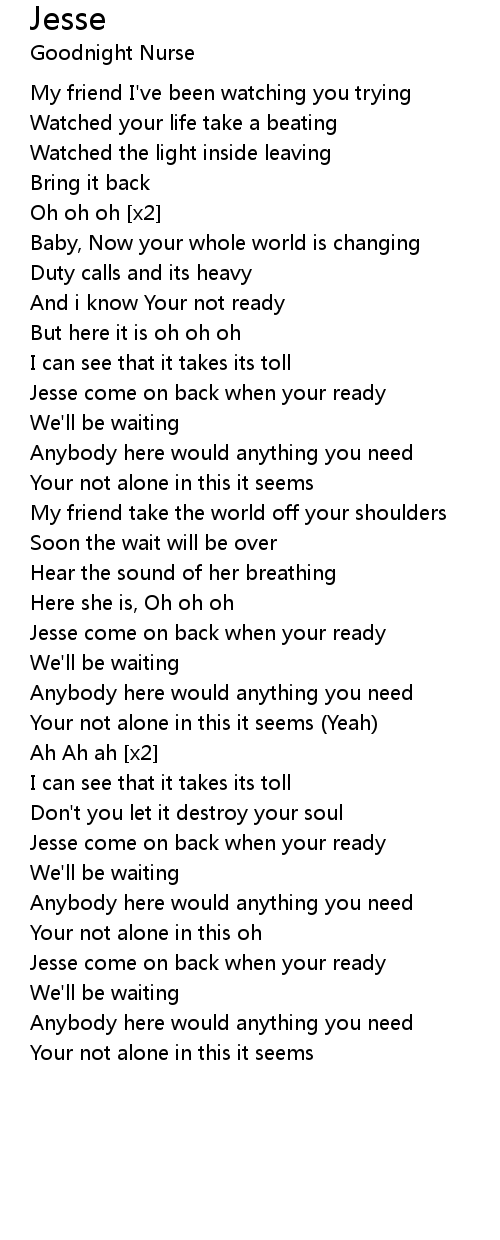 Jesse come on back when your ready |