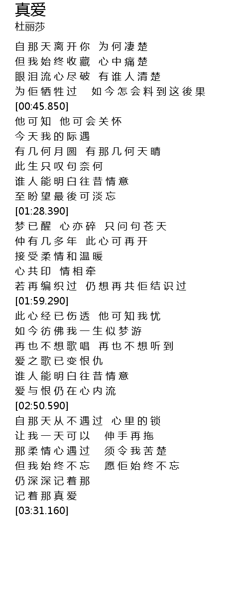 | [00:15.610] | 自 那 天 离 开 你 为 何 凄 楚 |