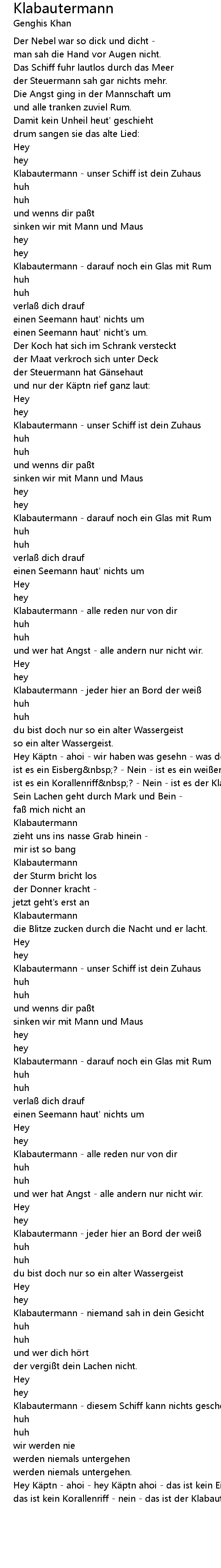 | Klabautermann niemand sah in dein Gesicht | |