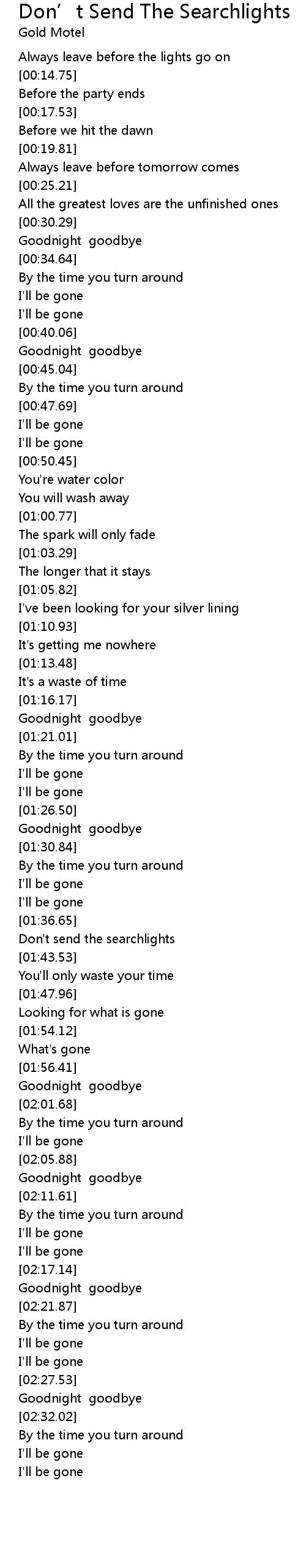 Goodnight goodbye |