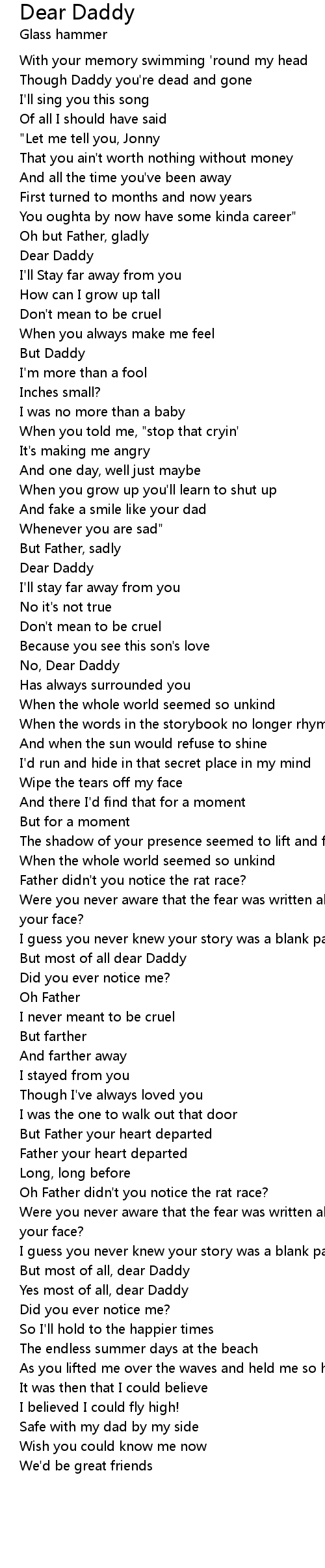 Though Daddy you're dead and gone |