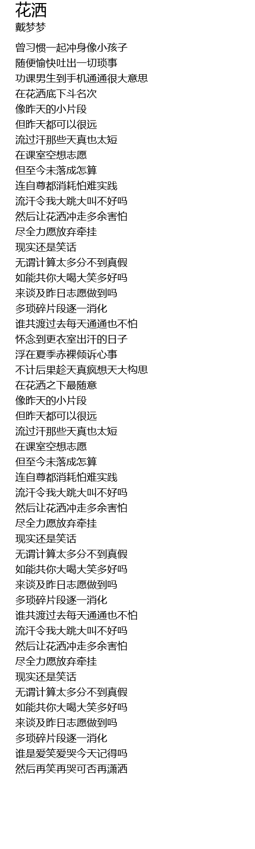 | 歌曲 | 花洒 |