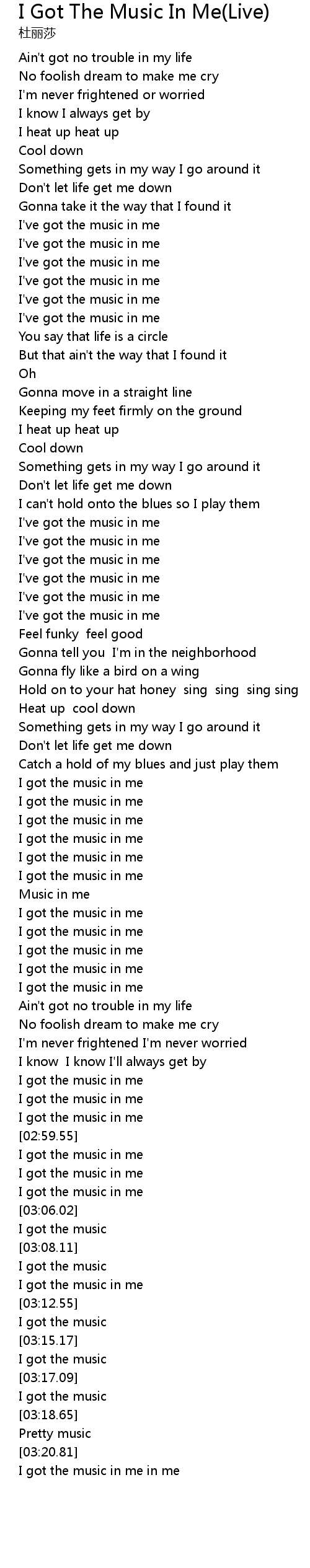 | [03:21.69] | I got the music in me in me |