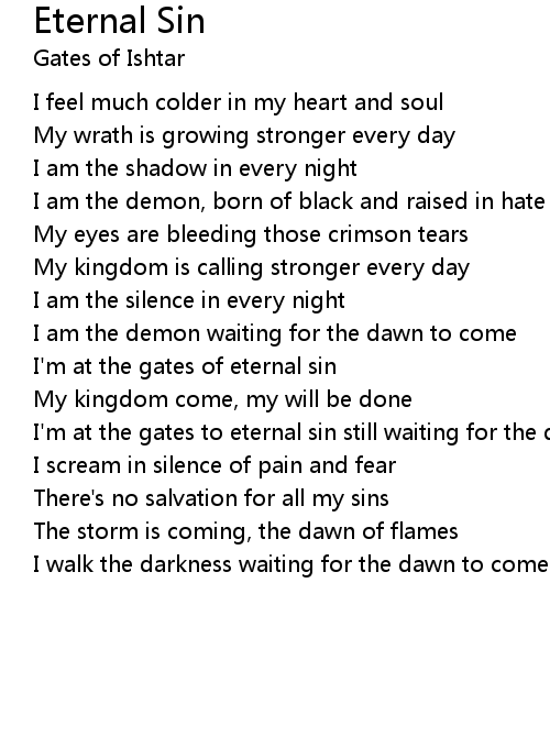 I'm at the gates of eternal sin |