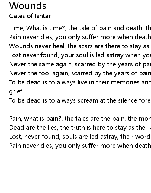 Wounds never heal, the scars are there to stay as the memory remains |
