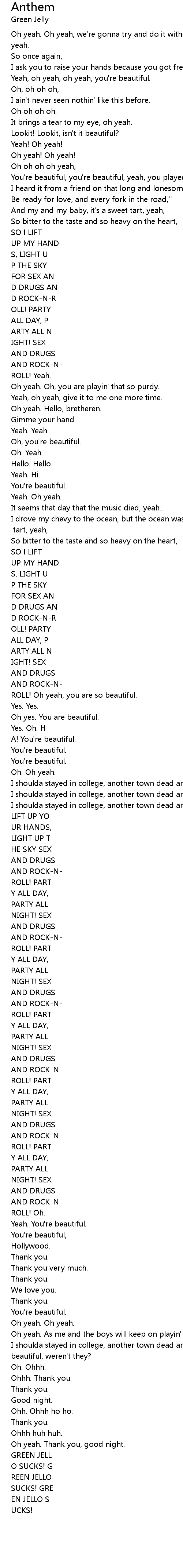 Oh yeah. As me and the boys will keep on playin' this same old anthem song. |