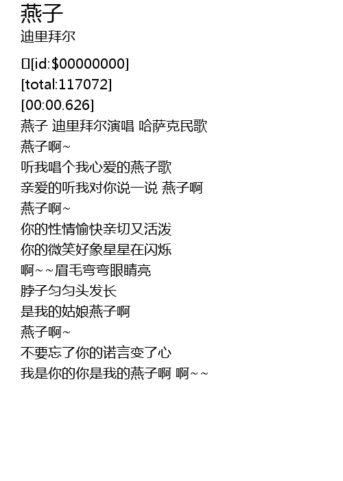 | [00:02.656] | 燕子 迪里拜尔演唱 哈萨克民歌 |