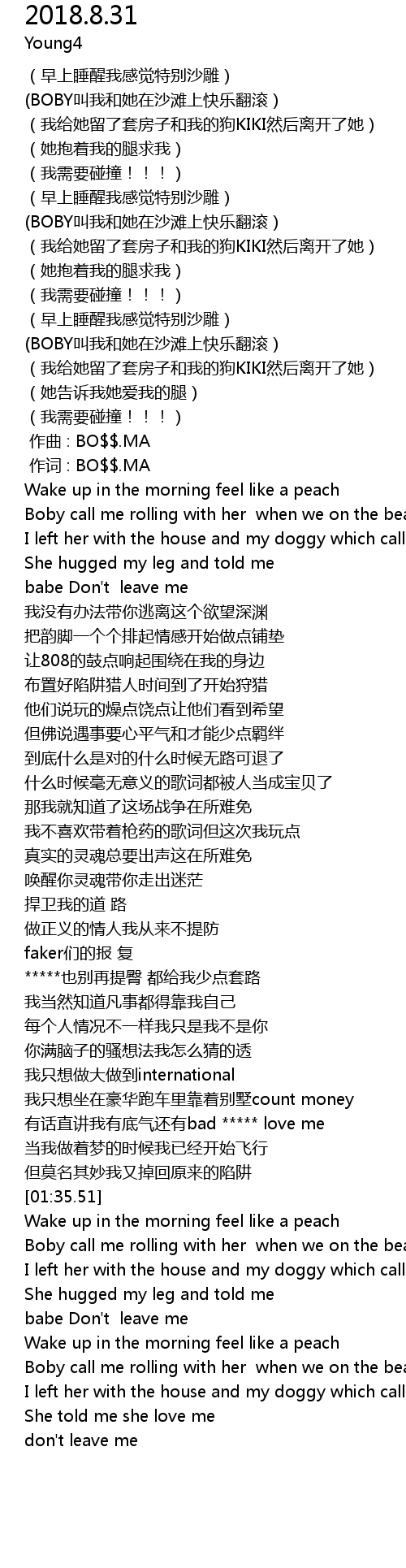 | [01:26.76] | 有话直讲我有底气还有bad ***** love me |