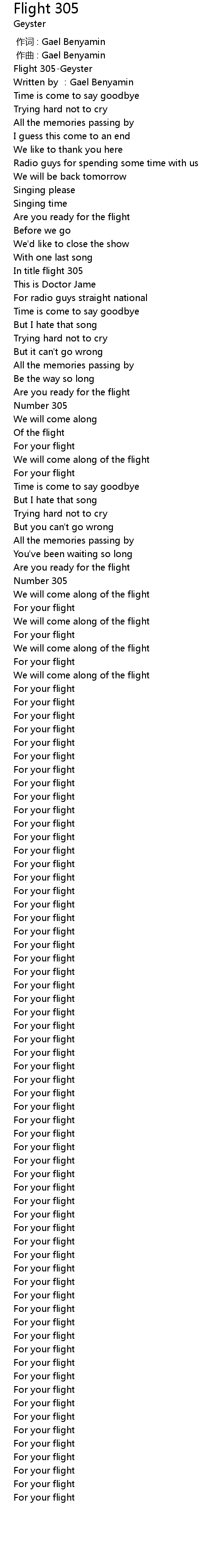| [00:00.00] | Flight 305Geyster |