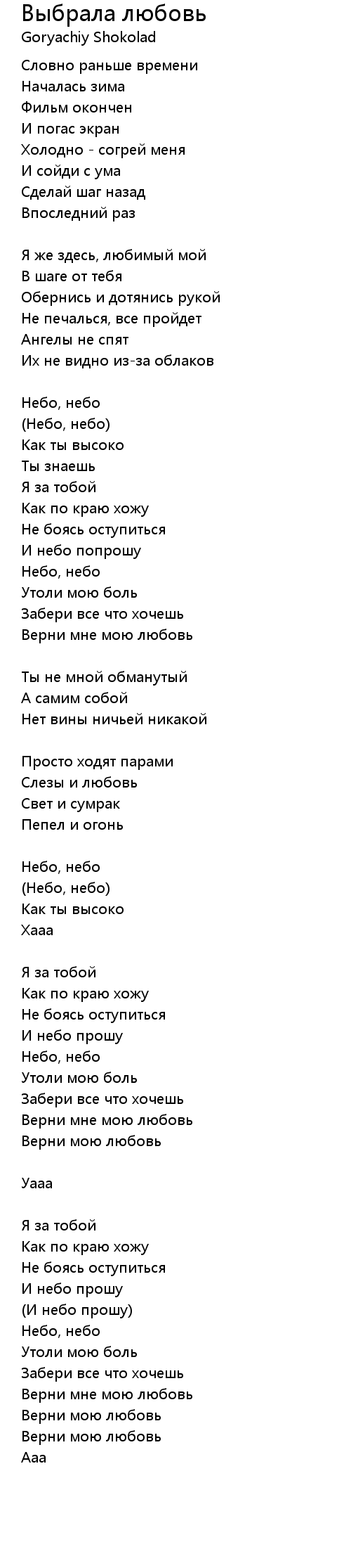 | 歌曲 | Выбрала любовь |