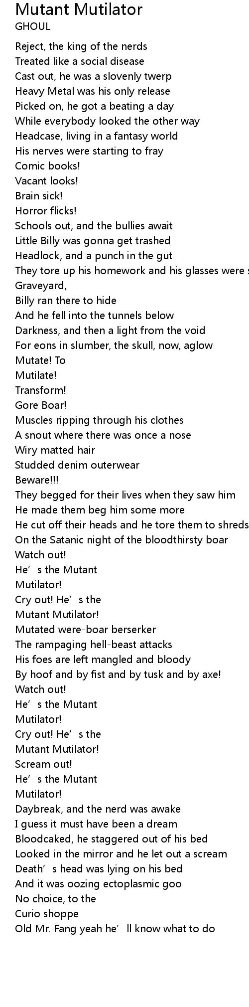 | 歌曲 | Mutant Mutilator |