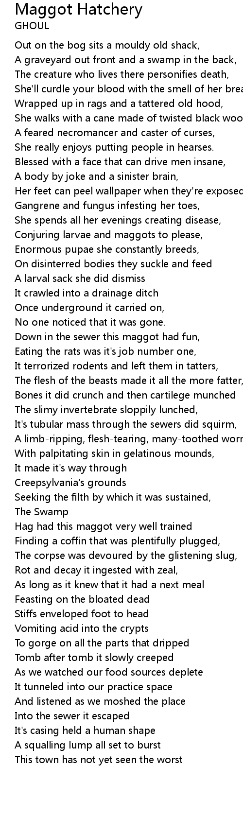 | Conjuring larvae and maggots to please, | |
