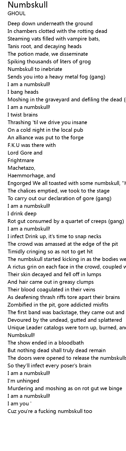 | Moshing in the graveyard and defiling the dead (gang) | |