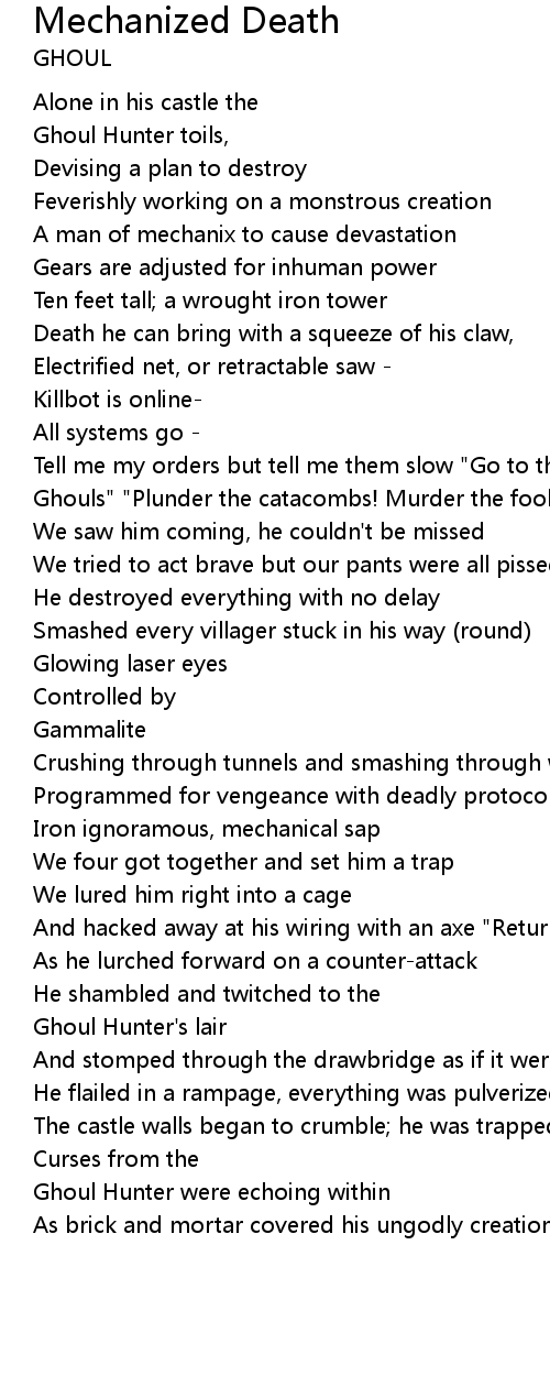 | Tell me my orders but tell me them slow "Go to the graveyard and flush out the Ghouls" "Plunder the catacombs! Murder the fools!" | |