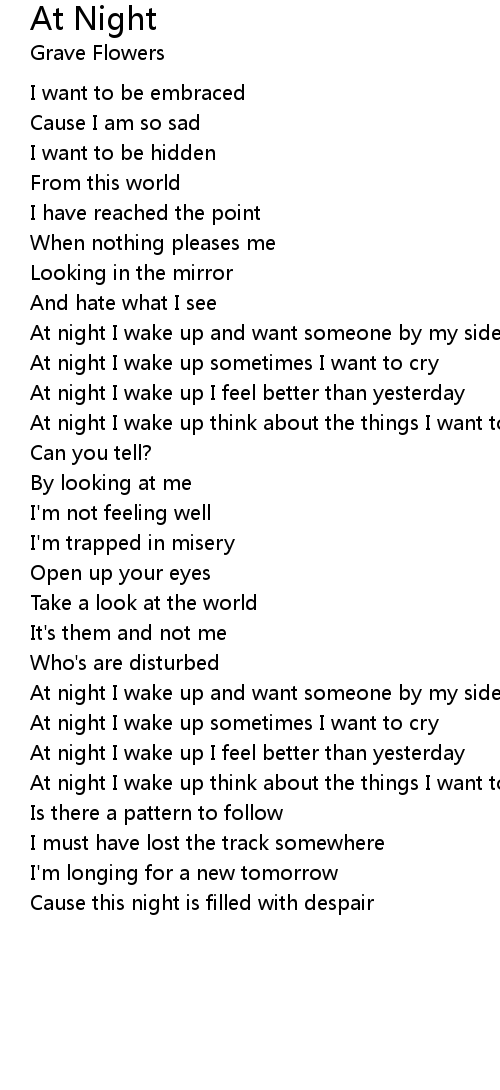 At night I wake up sometimes I want to cry |