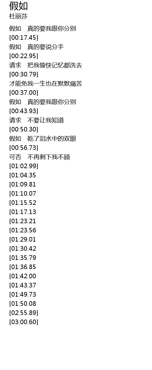 | [02:39.57][01:43.37] | 假如 天意让我此生得不到你 |