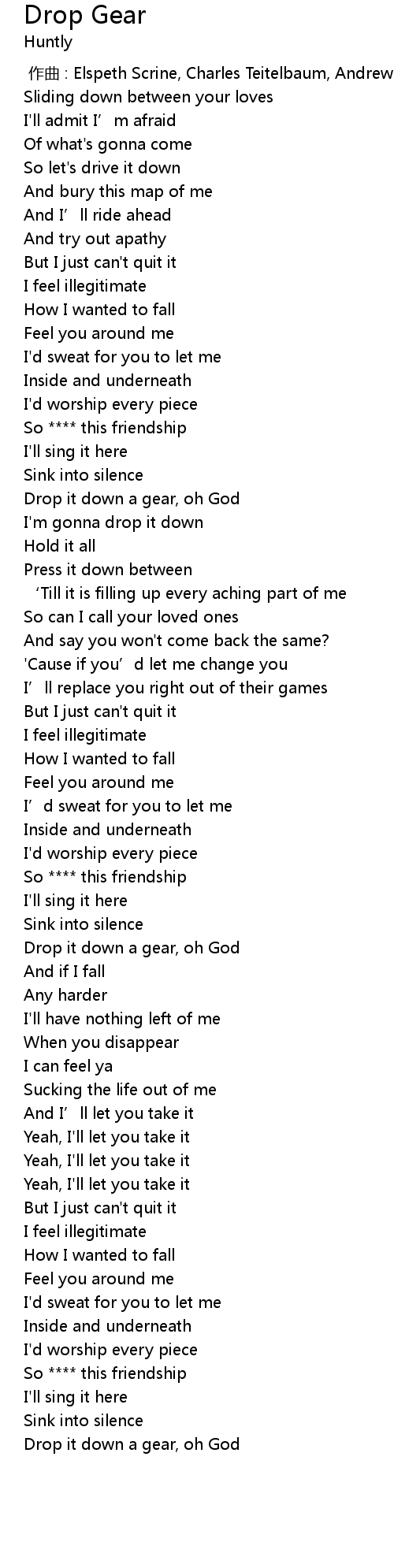 | [00:58.89] | Drop it down a gear, oh God |