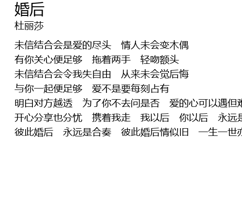 | 彼此婚后 永远是合奏 彼此婚后情似旧 一生一世亦情似旧 |