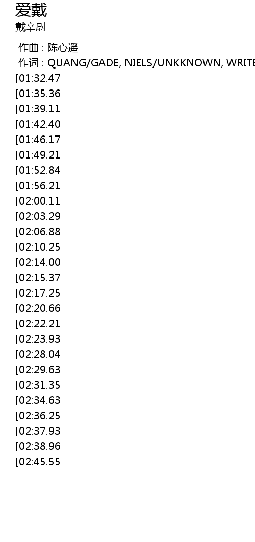 | [00:01.00] | zuò cí : QUANG GADE, NIELS UNKKNOWN, WRITER |