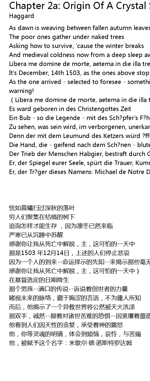| [04:09] | 他,被赋予这个名字:米歇尔·德·诺斯特罗达姆 |