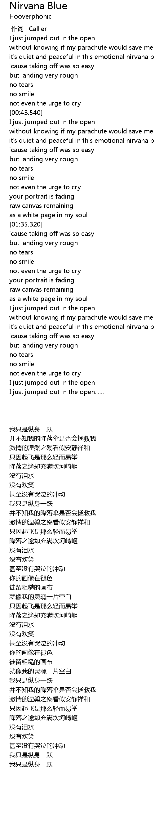 | [02:35.99] | it' s quiet and peaceful in this emotional nirvana blue |