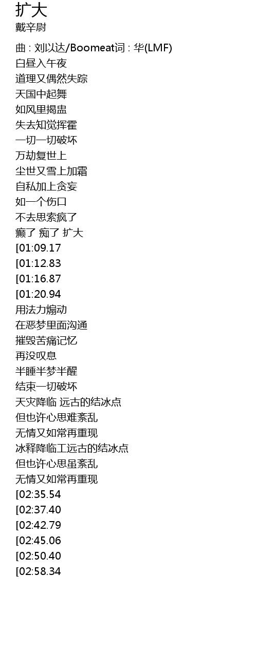 | [01:03.22] | 癫了 痴了 扩大 |