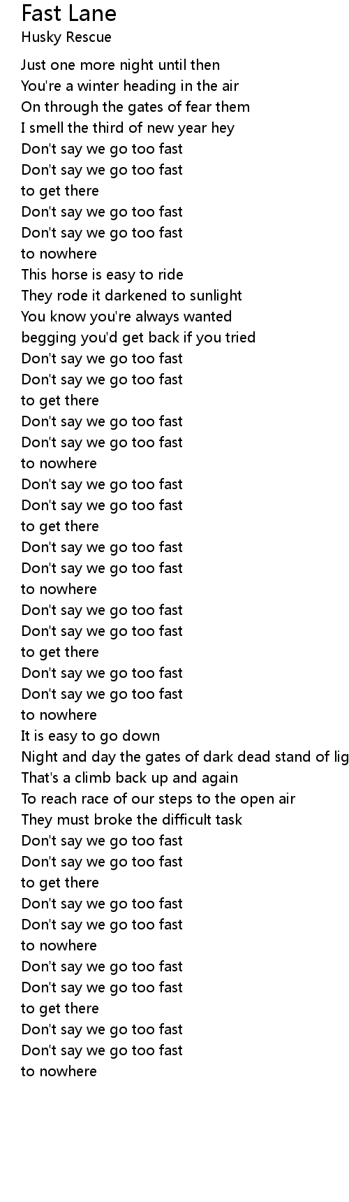 | Don' t say we go too fast | |