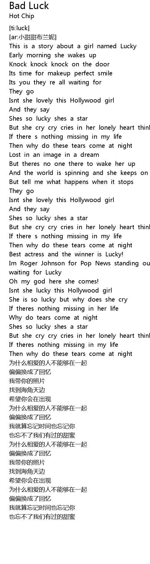 | [02:52.400] | Isnt she lucky this Hollywood girl |