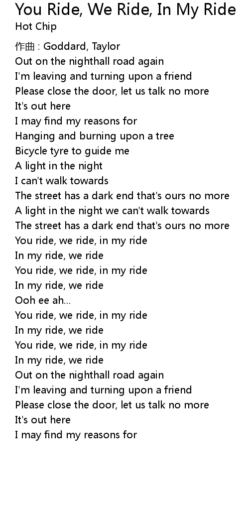 | 歌曲 | You Ride, We Ride, In My Ride |
