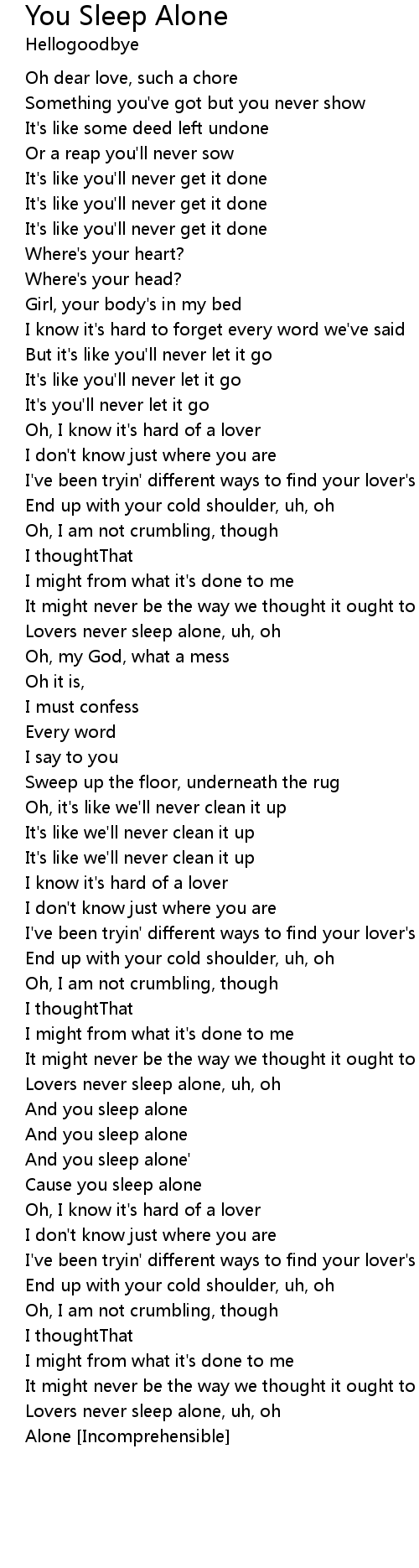 And you sleep alone |