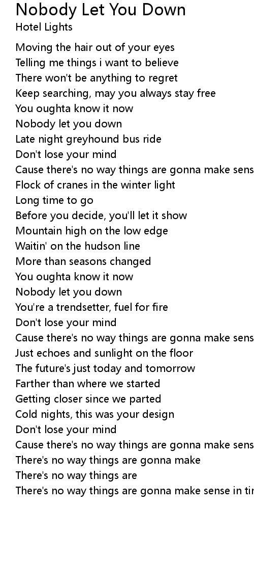 Nobody let you down |
