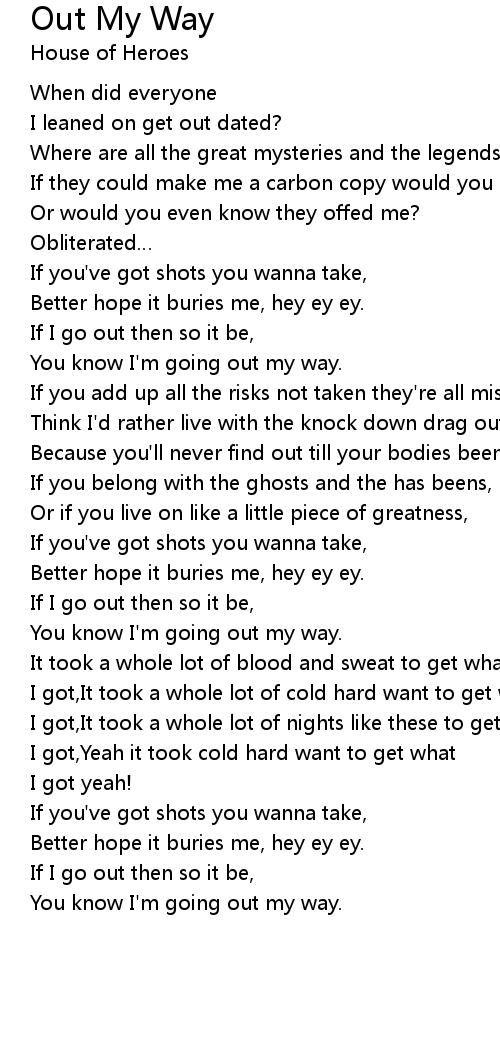| You know I' m going out my way. | |