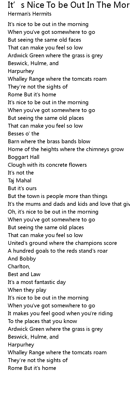 Oh, it's nice to be out in the morning |
