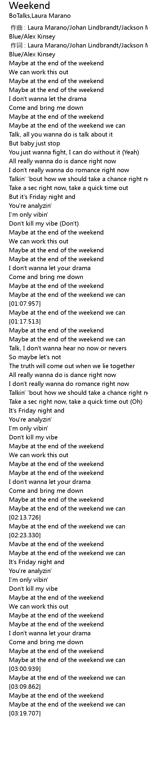 | [00:00.522] | 作词 : Laura Marano/Johan Lindbrandt/Jackson Morgan/Mikal Blue/Alex Kinsey |