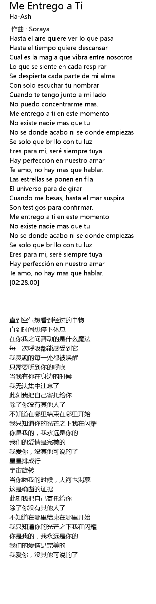 | 歌曲 | Me Entrego a Ti |
