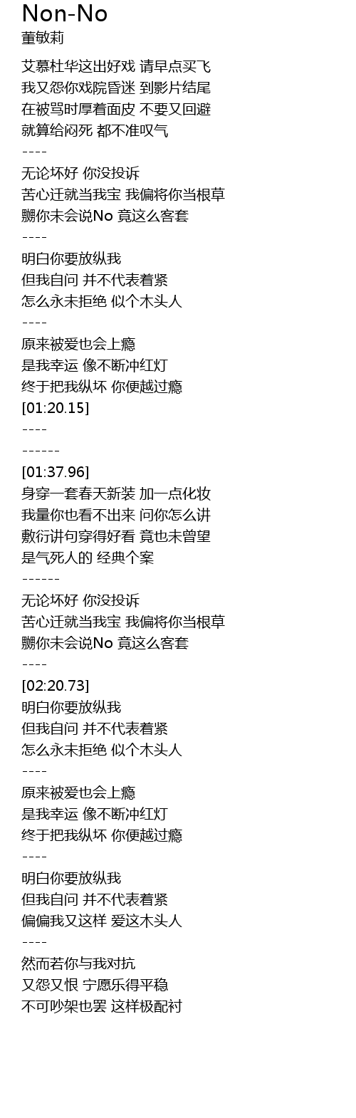 | [00:50.78] | 嬲你未会说No 竟这么客套 |