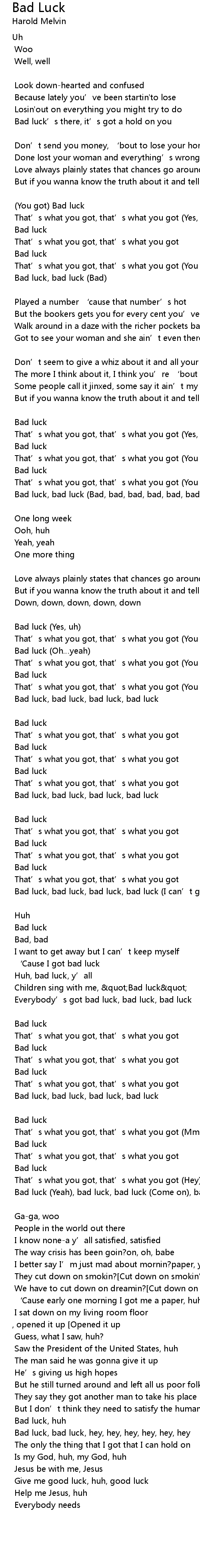 | Everybody' s got bad luck, bad luck, bad luck | |