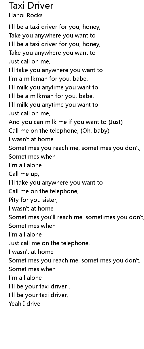 I'll be your taxi driver, |