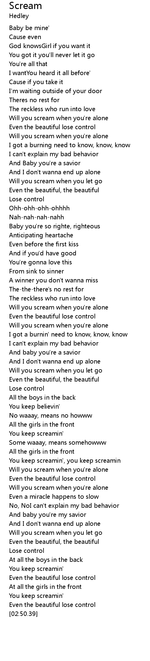 You keep screamin' |