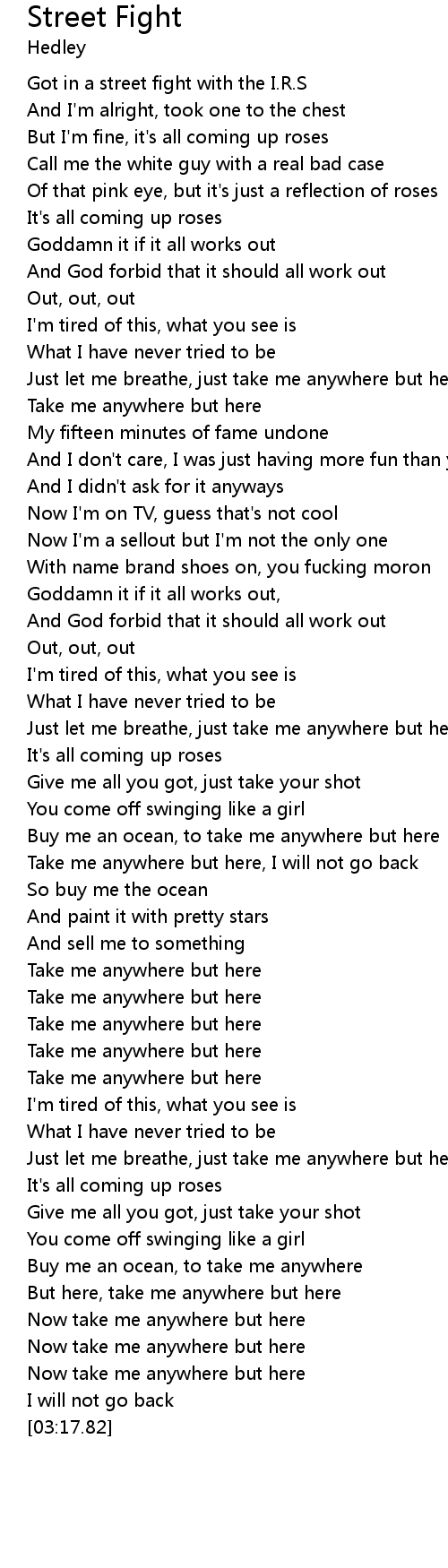 | [00:07.49] | But I'm fine, it's all coming up roses |