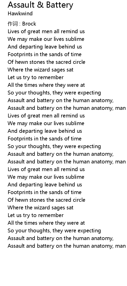 | Assault and battery on the human anatomy, | |