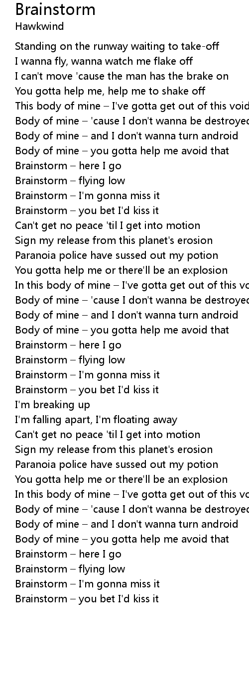 | [00:57.83] | Brainstorm I' m gonna miss it |