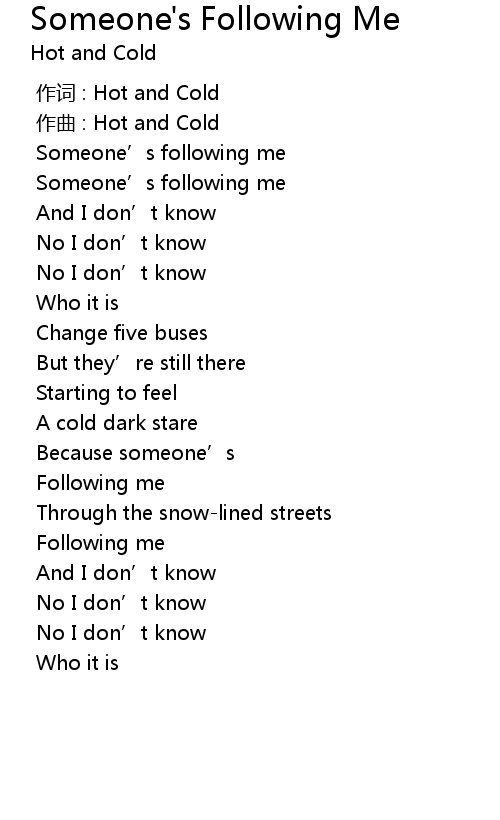 | 歌曲 | Someone's Following Me |