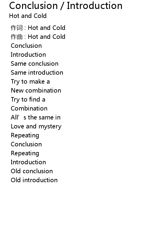 | [00:00.000] | 作词 : Hot and Cold |